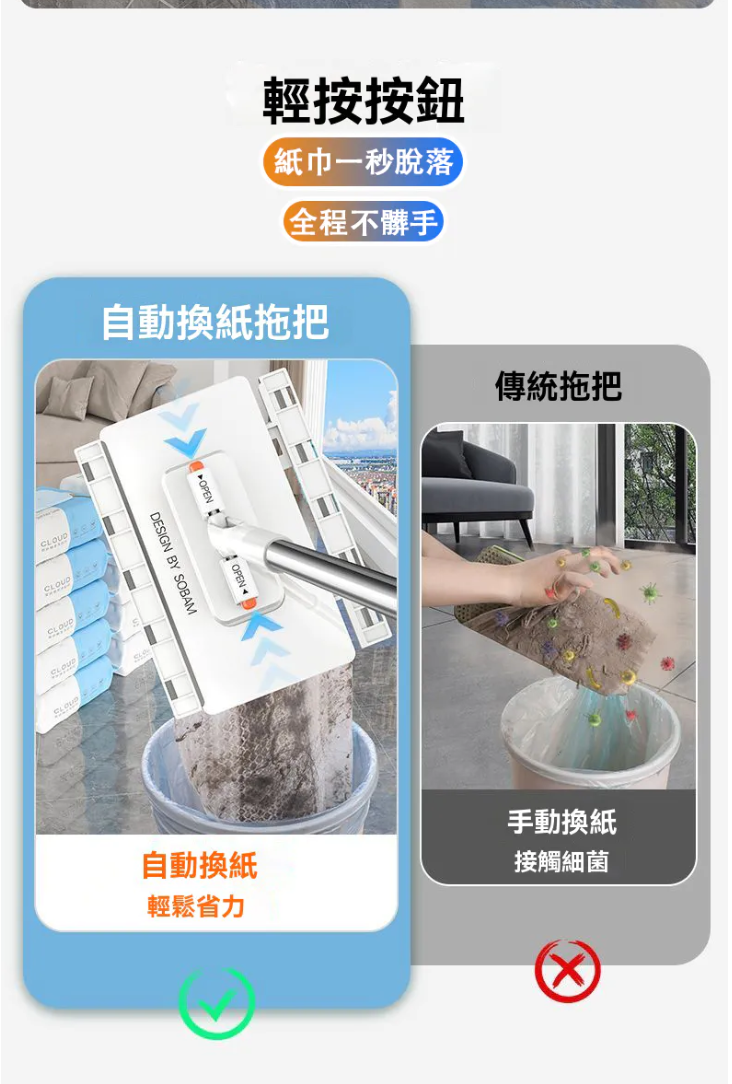12分鐘前【台灣爆紅款 現貨秒發】3秒快速換布,免手洗超衛生,360度旋轉拖頭,深入縫隙無死角,磁磚、木地板都適用! - 【超级優惠】3入組NT$1180