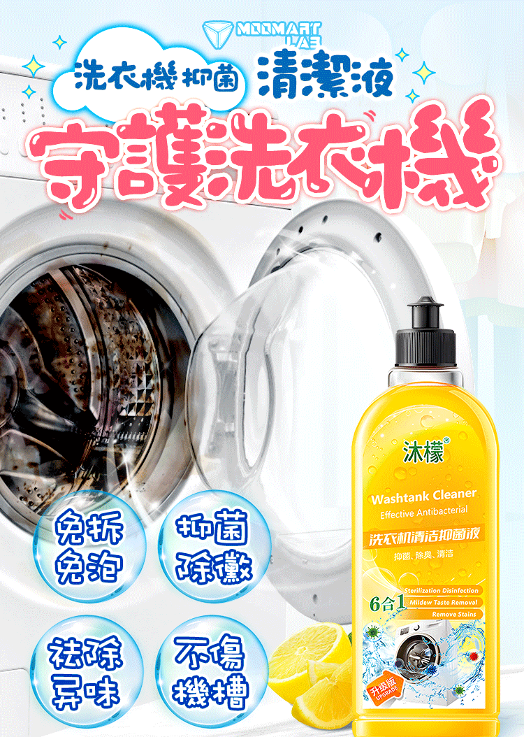 4分鐘前還洗衣機一個清新 ,一鍵免浸泡 洗衣機抑菌清潔液 淡淡清香_你值得擁有 - 【狂殺特賣】7入組 NT$1390